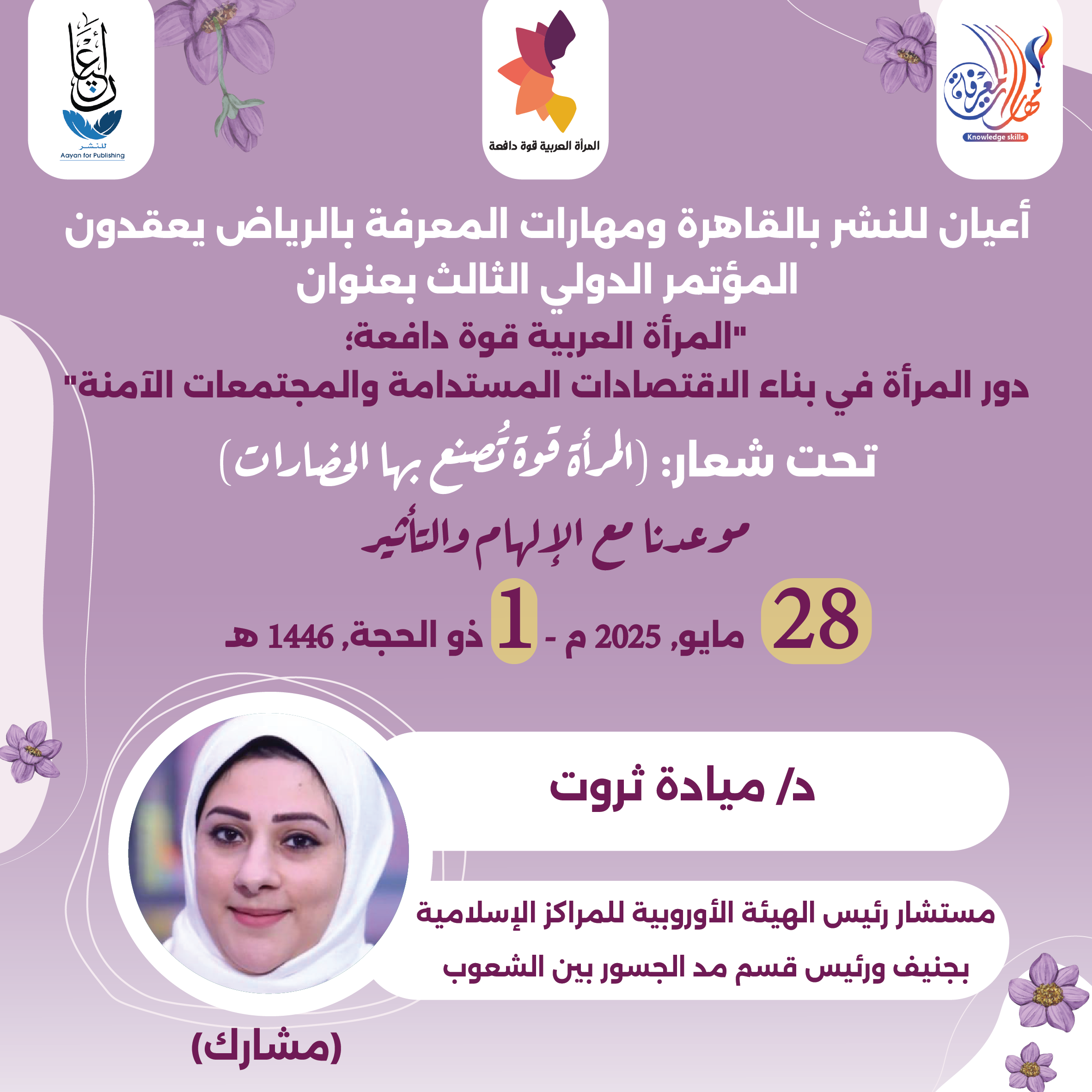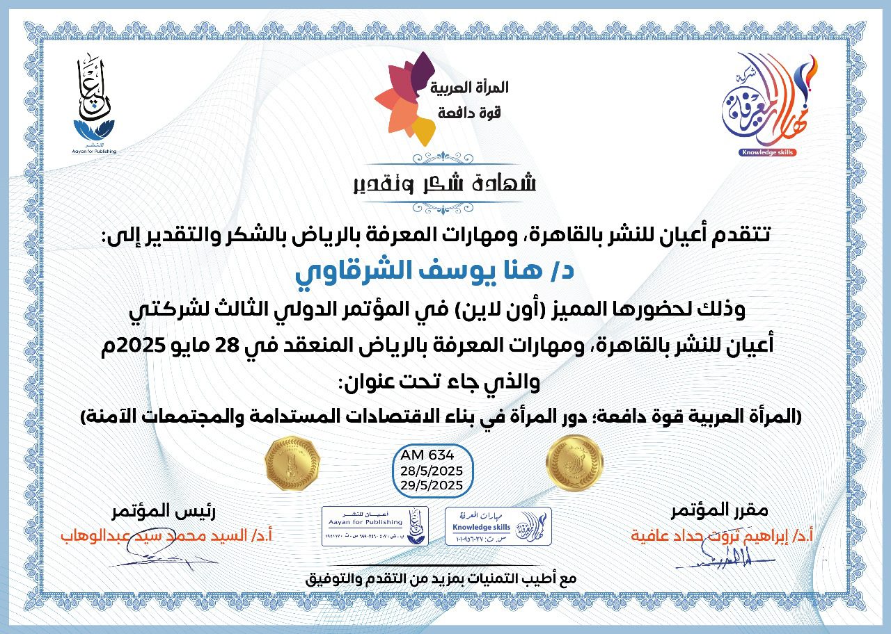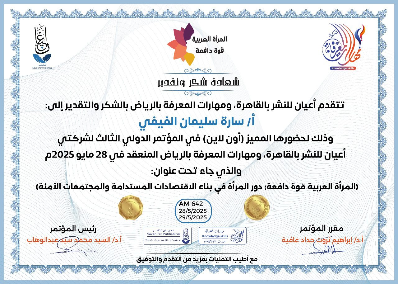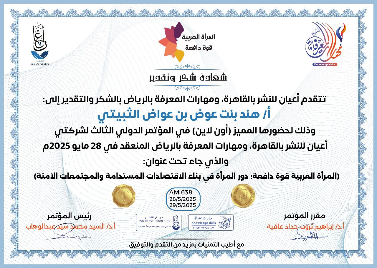 العمل على إبراز القدرات الهائلة للمرأة العربية، ودورها في تحفيز الاقتصاد والتنمية المستدامة، من خلال تبني سياسات واستراتيجيات داعمة لتعزيز مشاركتها الفاعلة في المجتمع.