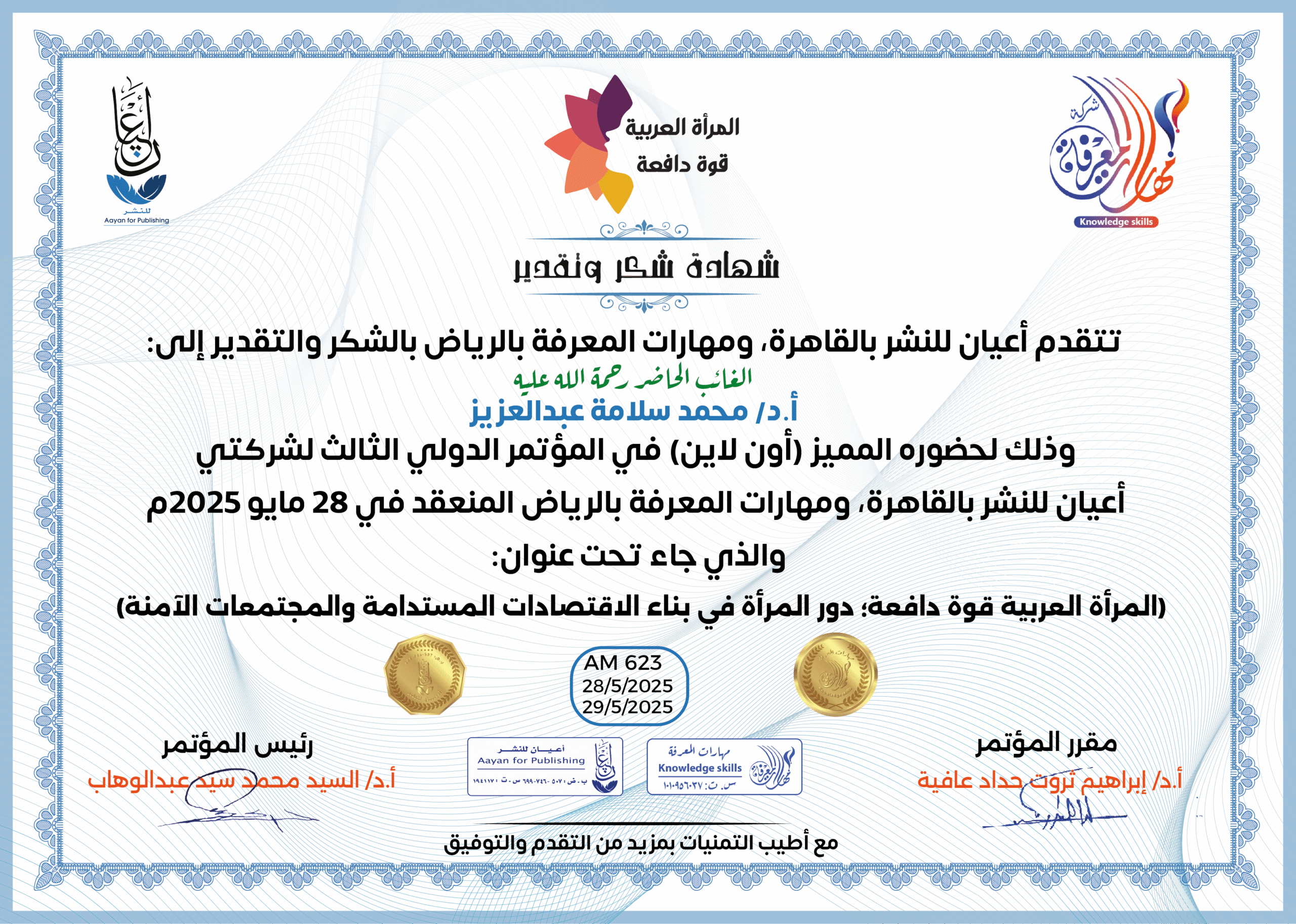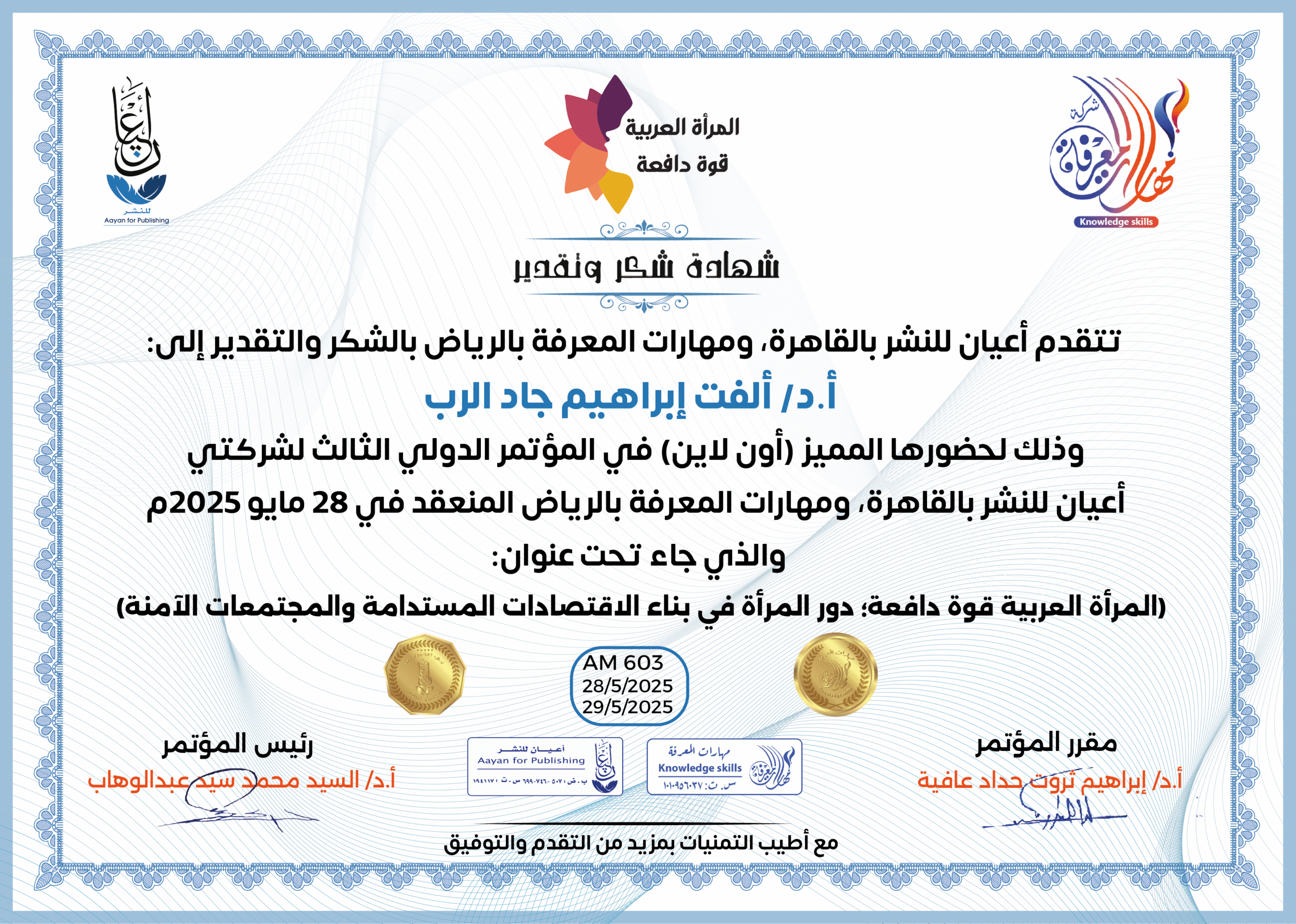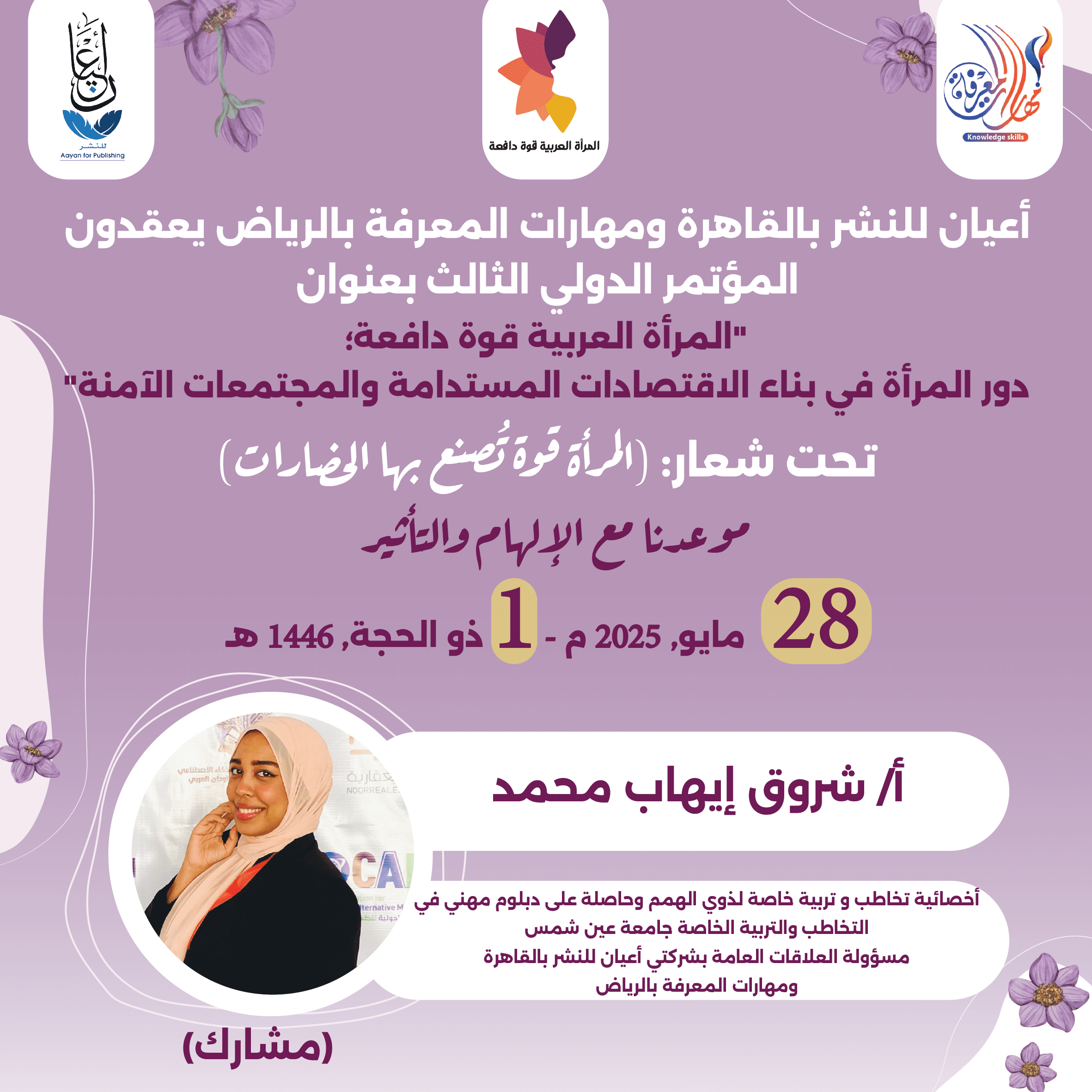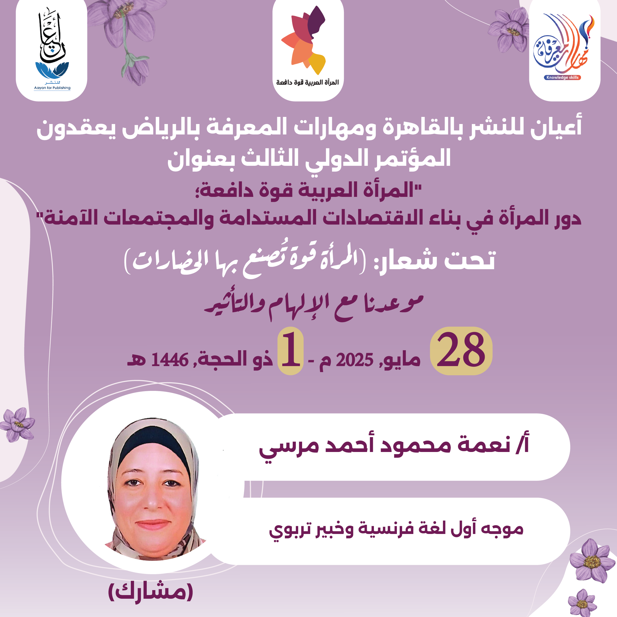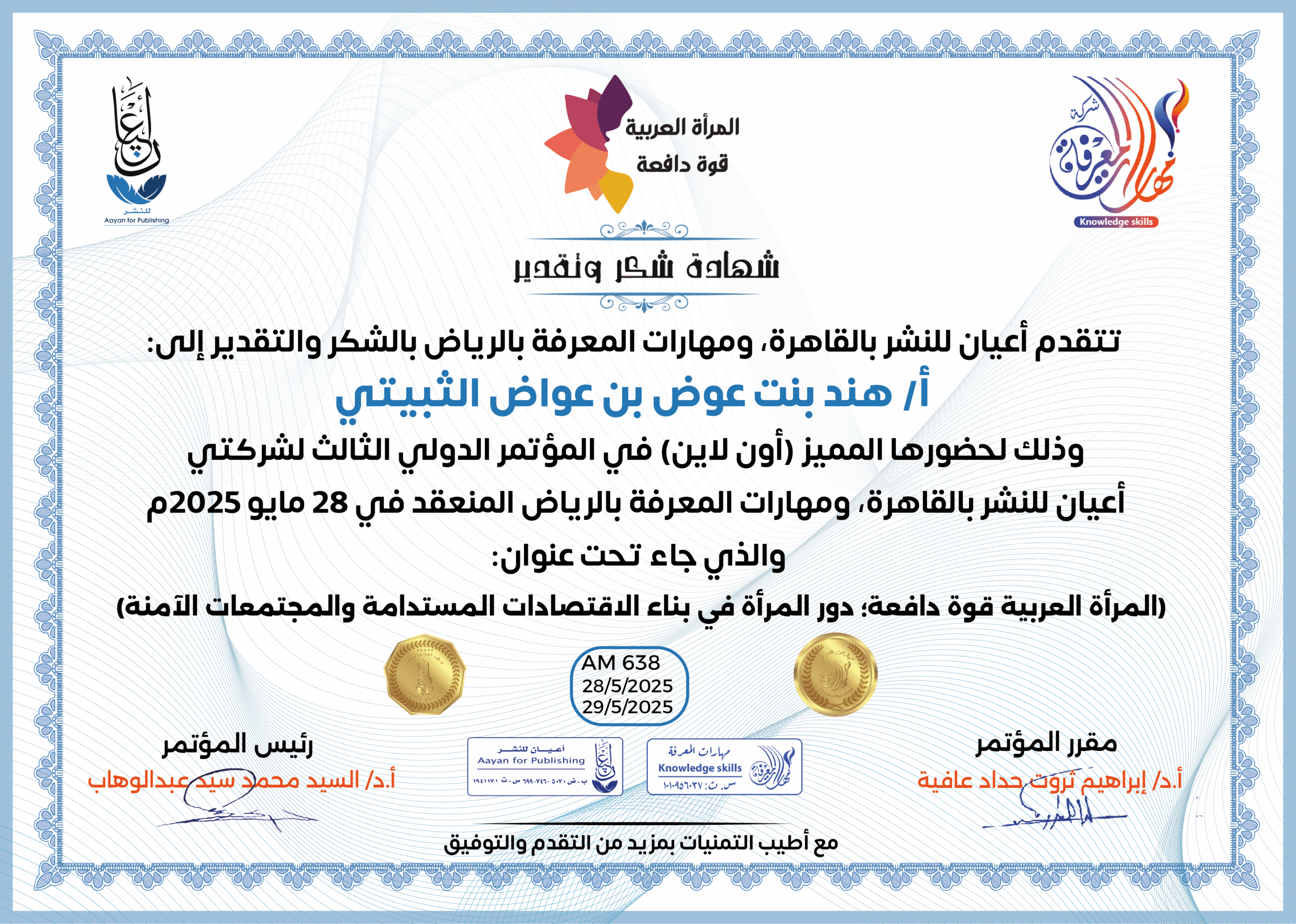 العمل على إبراز القدرات الهائلة للمرأة العربية، ودورها في تحفيز الاقتصاد والتنمية المستدامة، من خلال تبني سياسات واستراتيجيات داعمة لتعزيز مشاركتها الفاعلة في المجتمع.