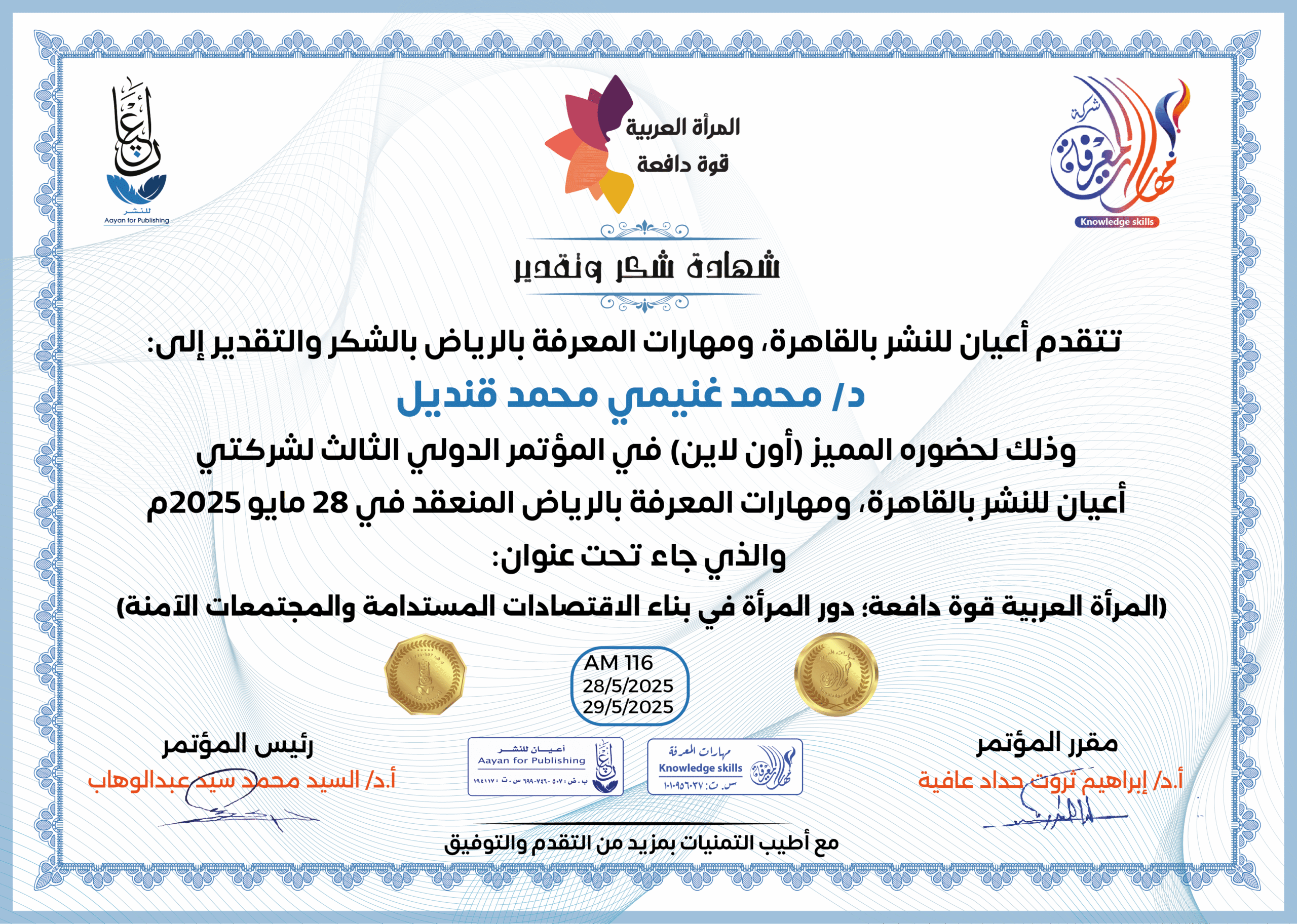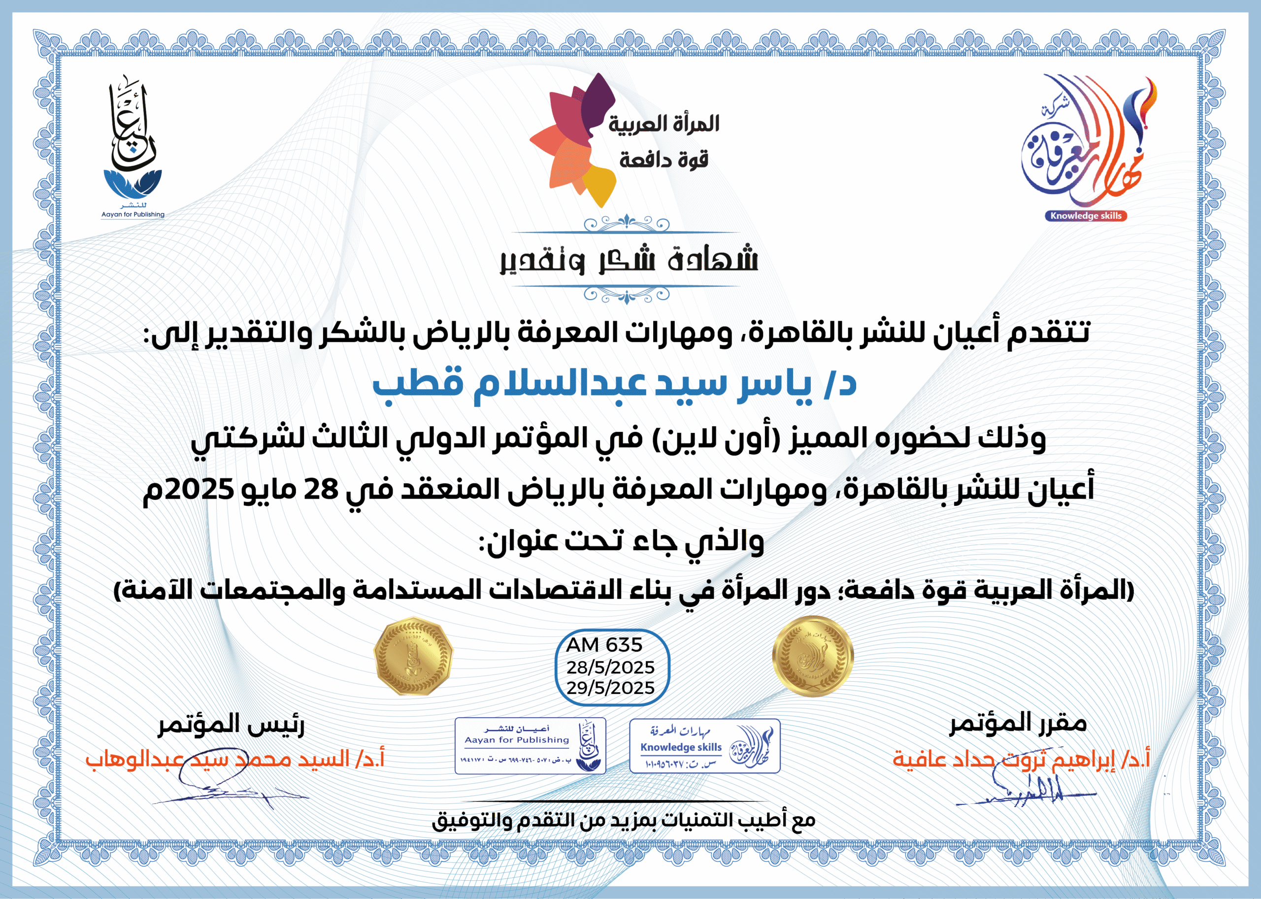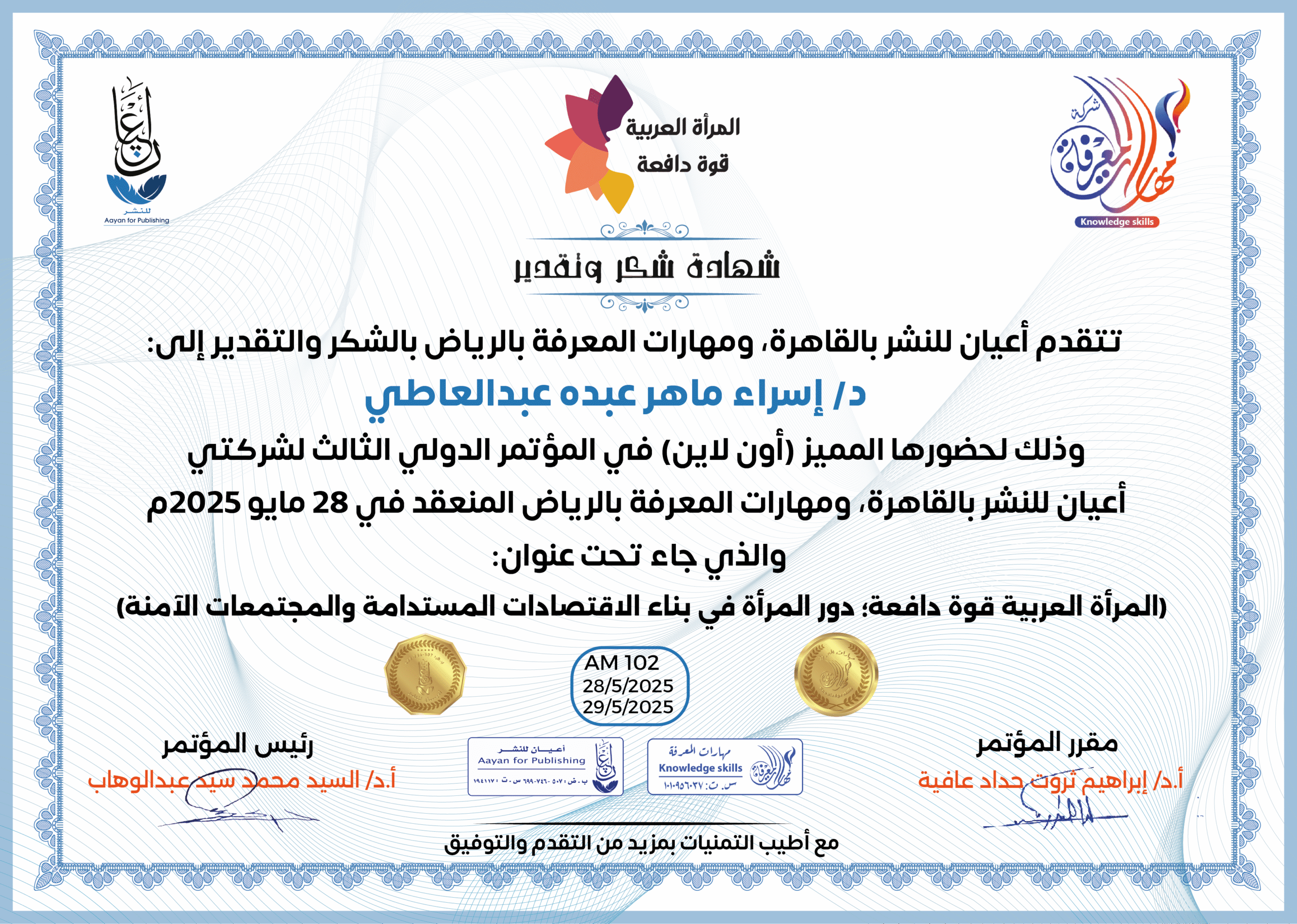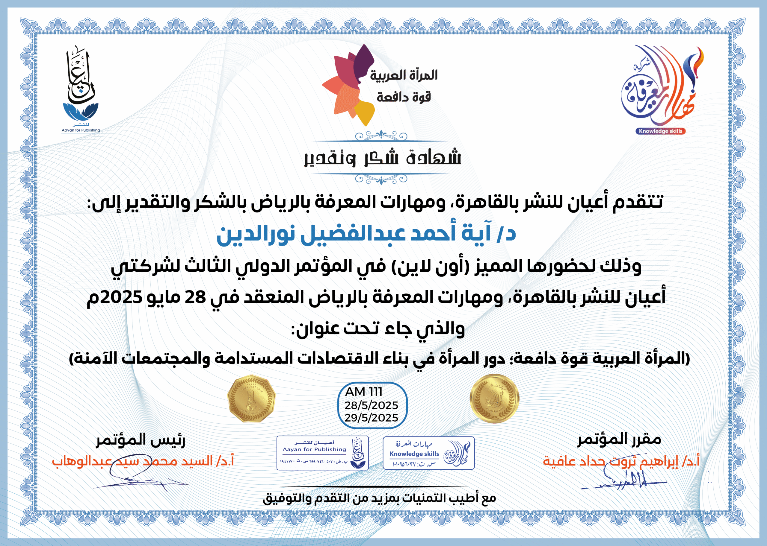 العمل على إبراز القدرات الهائلة للمرأة العربية، ودورها في تحفيز الاقتصاد والتنمية المستدامة، من خلال تبني سياسات واستراتيجيات داعمة لتعزيز مشاركتها الفاعلة في المجتمع.